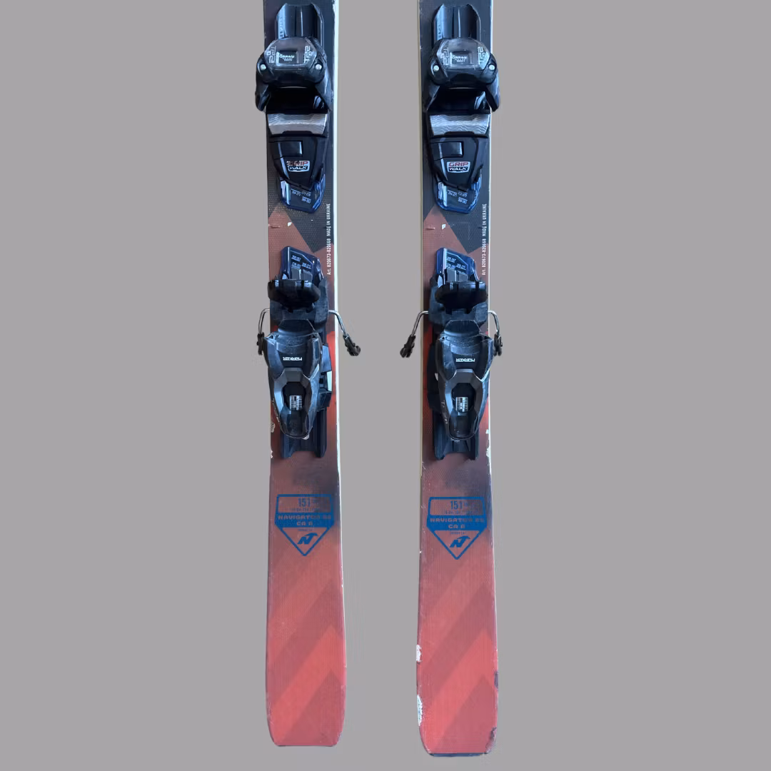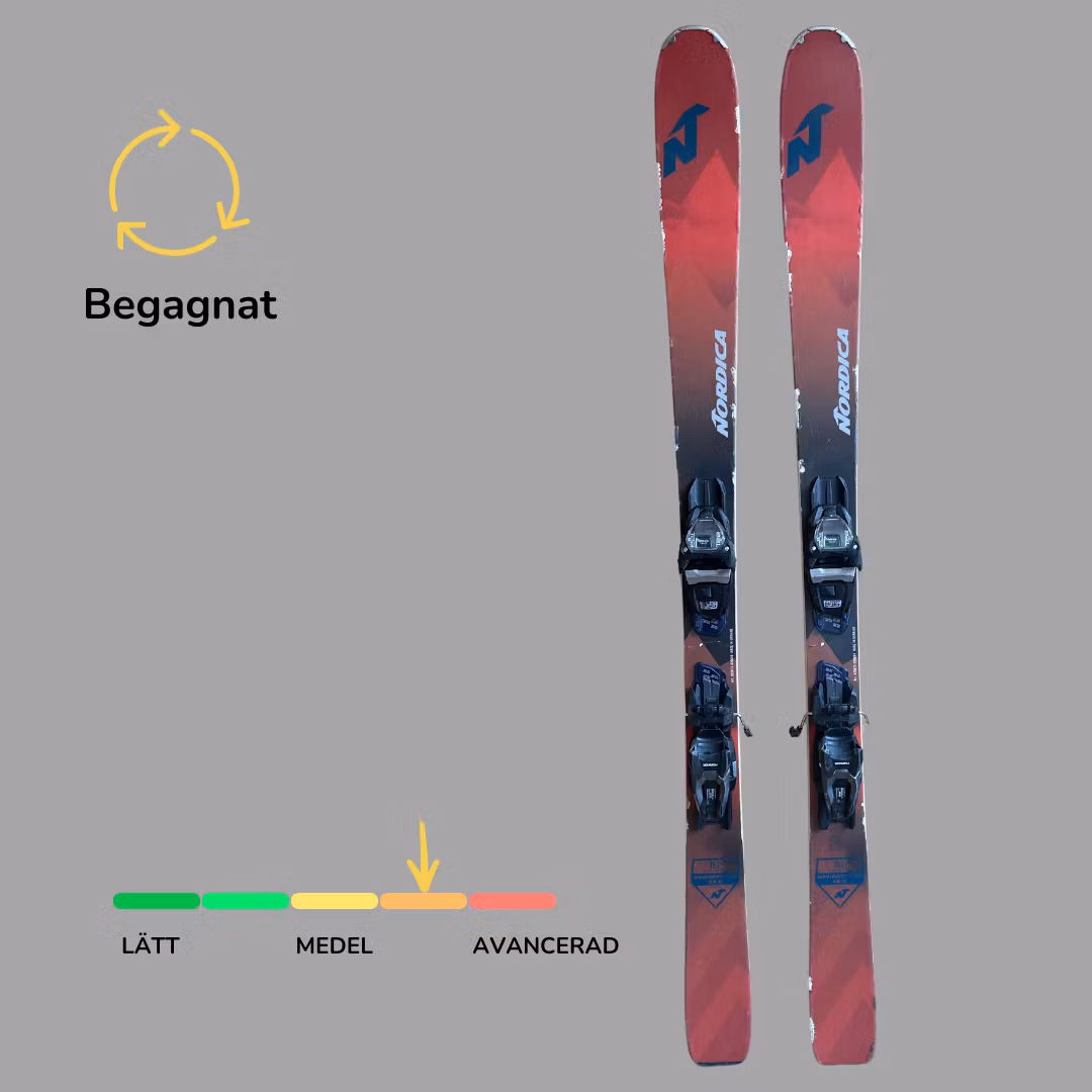Begagnad Nordica Navigator 85, 151cm. Skidorna är slipade och vallade. Slitage och skav förekommer. Skidorna har en demobinding som går att justera efter alla seniorstorlekar. Bindningen är GripWalk kompatibel
