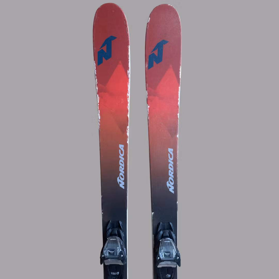 Begagnad Nordica Navigator 85. Skidorna är slipade och vallade. Slitage och skav förekommer. Skidorna har en binding som går att justera efter alla seniorstorlekar. Bindningen är GripWalk kompatibel