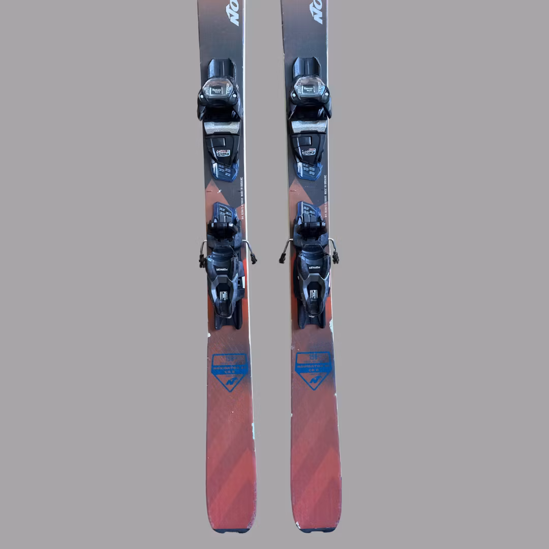 Begagnad Nordica Navigator 85. Skidorna är slipade och vallade. Slitage och skav förekommer. Skidorna har en binding som går att justera efter alla seniorstorle