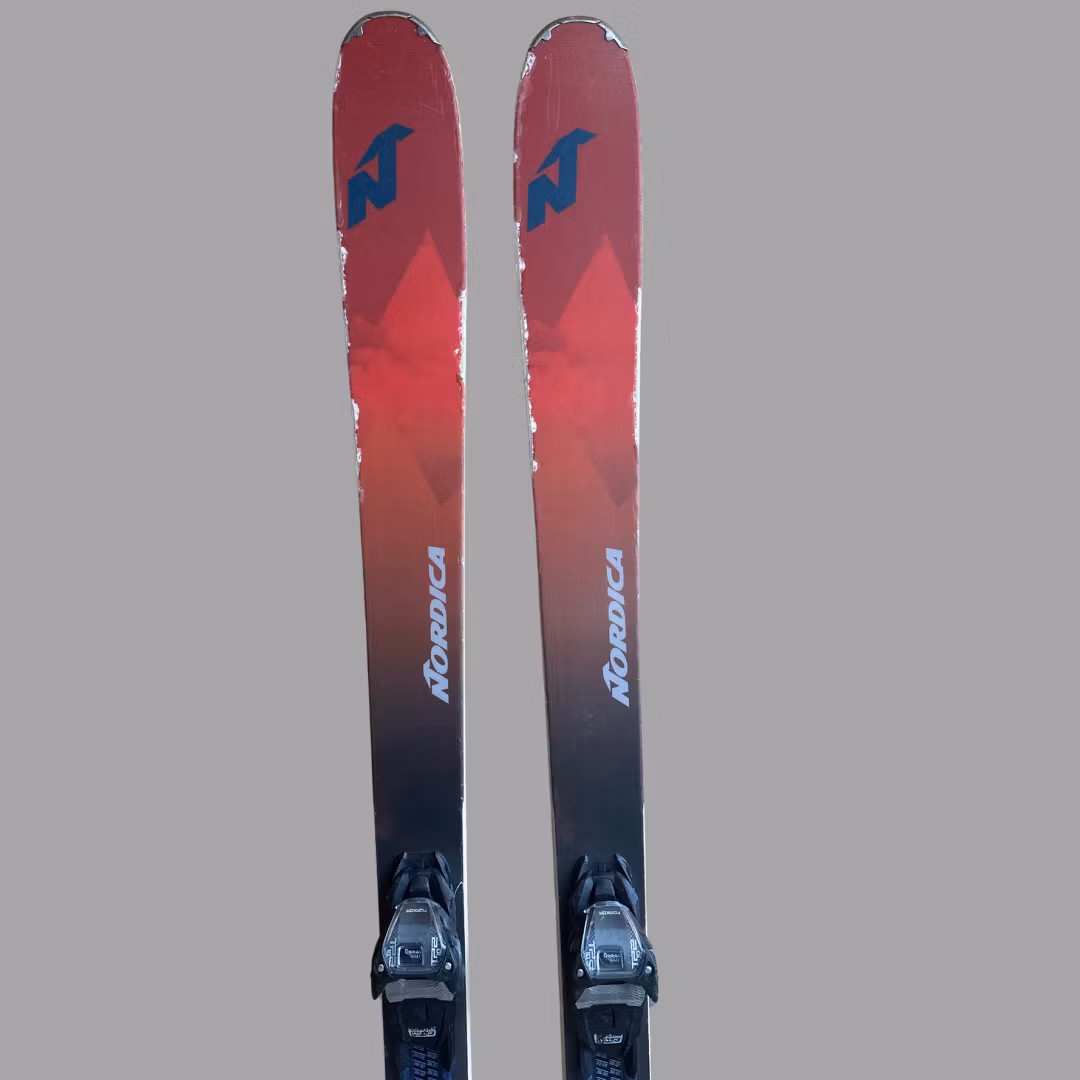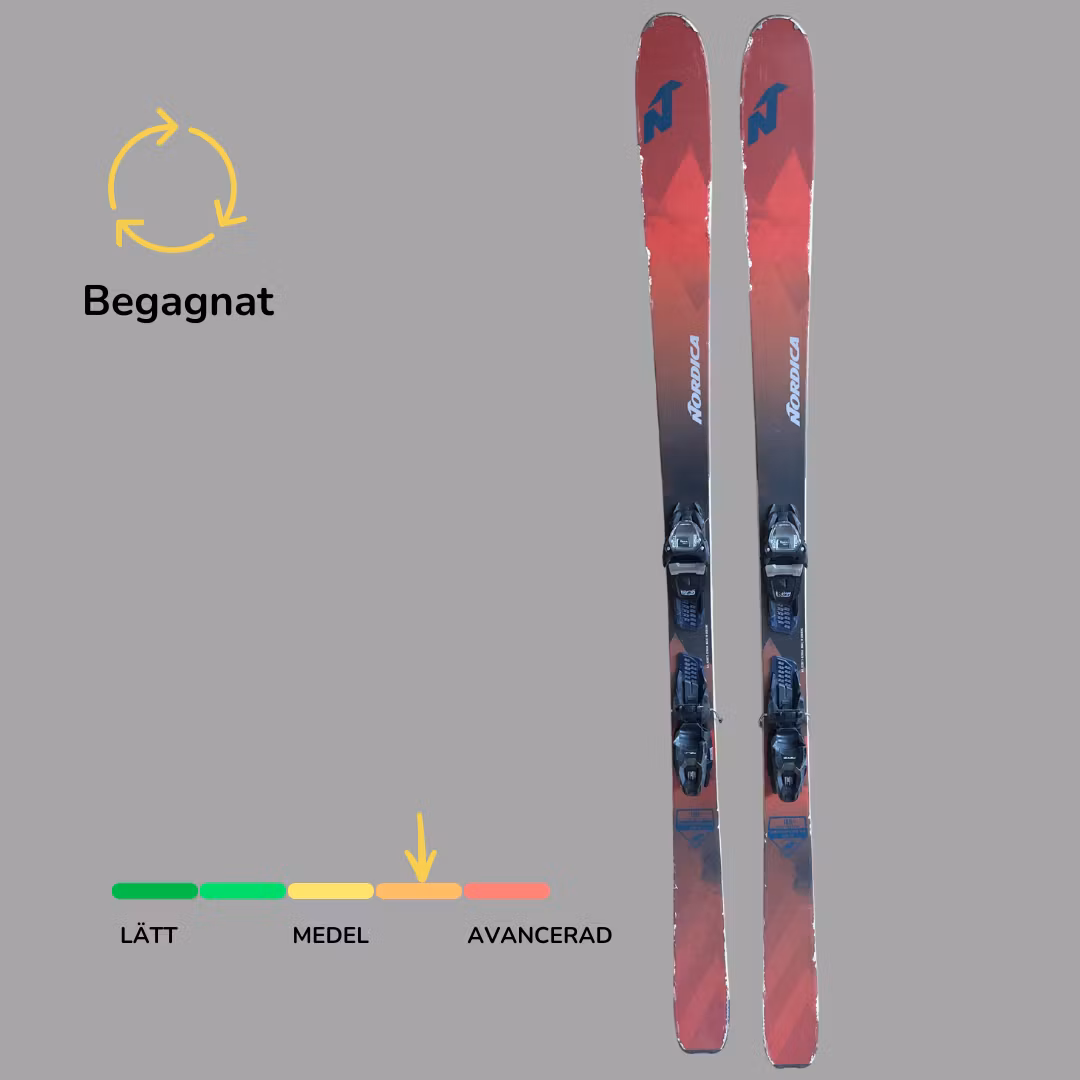 Begagnad Nordica Navigator 85. Skidorna är slipade och vallade. Slitage och skav förekommer. Skidorna har en binding som går att justera efter alla seniorstorlekar. Bindningen är GripWalk kompatibel