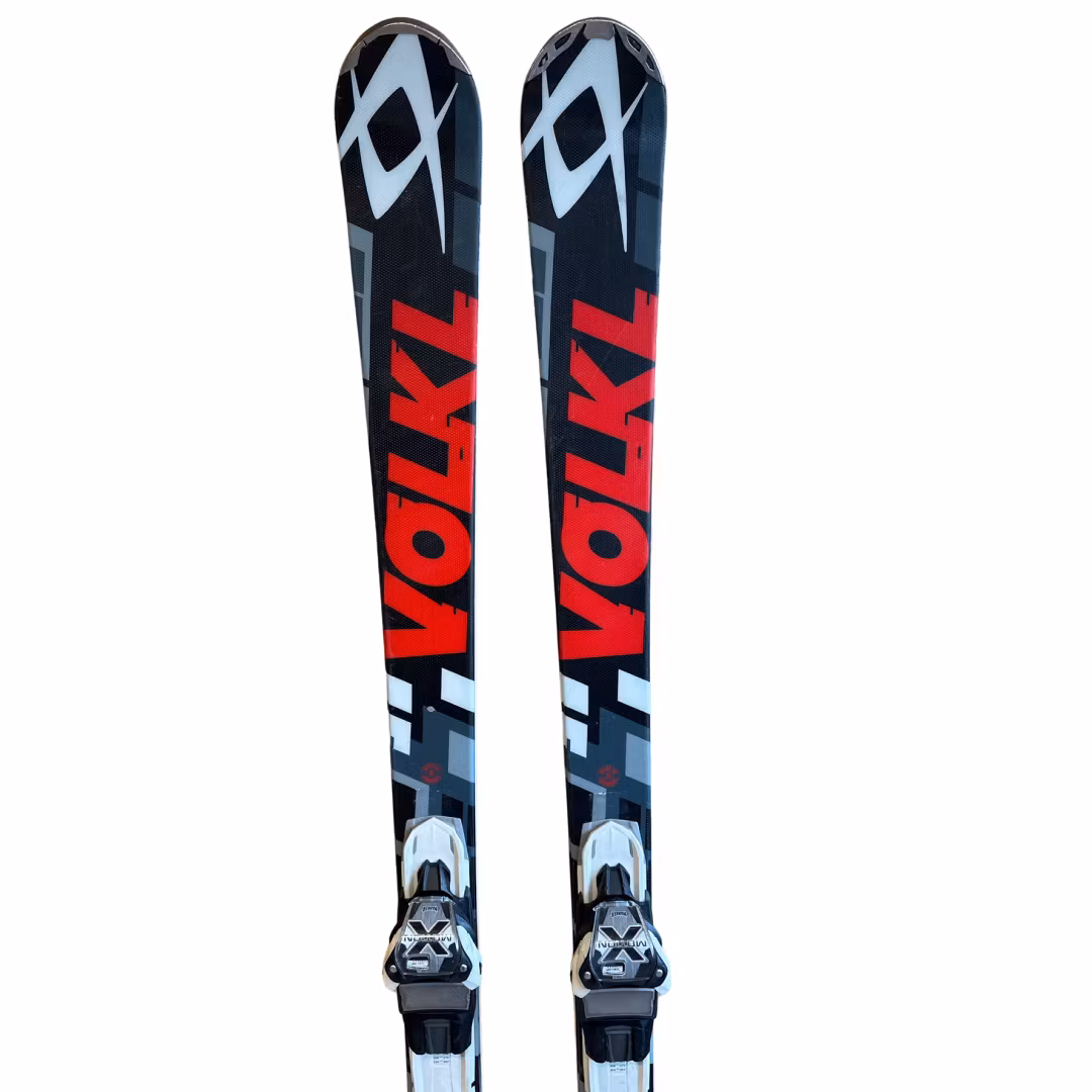 Begagnade Völkl Racetiger SRCSkidorna är slipade och vallade. Slitage och skav förekommer. Skidorna har en binding som går att justera efter alla seniorstorleka