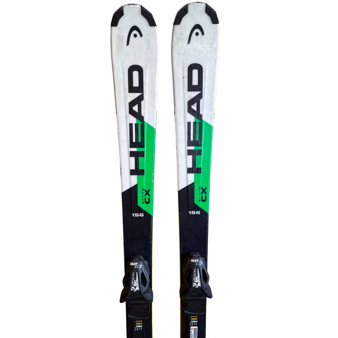 Begagnad Head Shape CX Skidorna är slipade och vallade. Slitage och skav förekommer. Skidorna har en binding som går att justera efter alla seniorstorlekar