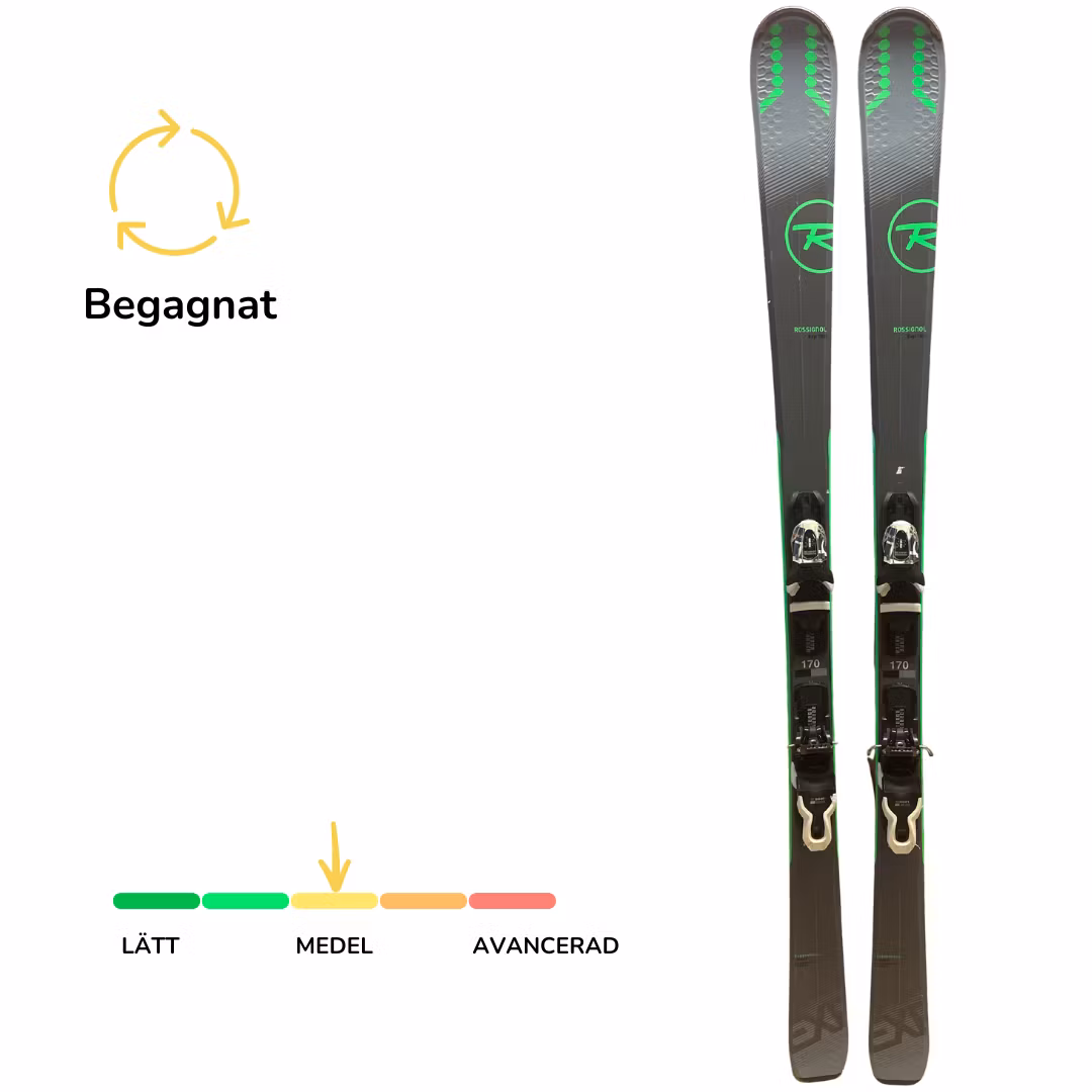 Rossignol Experience 76CiSkidorna är slipade och vallade. Slitage och skav förekommer. Skidorna har en binding som går att justera efter alla seniorstorlekar.Hu