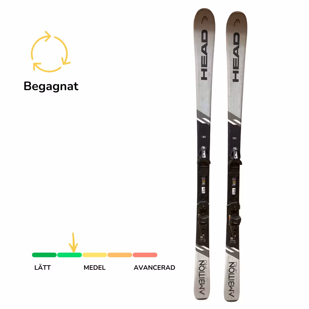 Begagnade Head Ambition Pro R - Skidorna är slipade och vallade. Slitage och skav förekommer.
